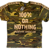 Official PREMIUM Forever Hardcore rugged camo short sleeve shirt. Stylish and iconic 'Forever Hardcore' logo on the front, and ‘100% or Nothing - Forever Hardcore’ slogan on the reverse, with running stylish '100% or Nothing' slogan down each sleeve.